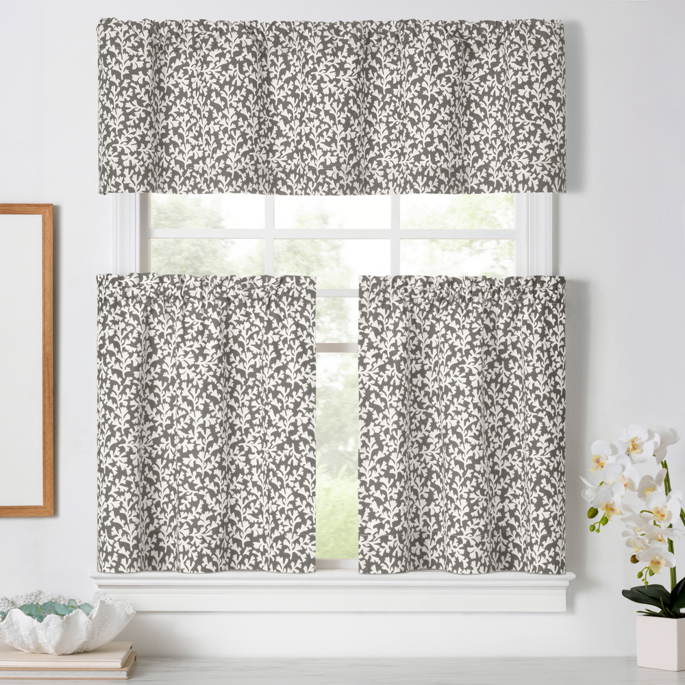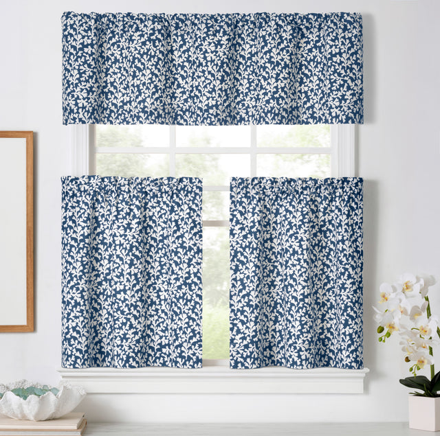 Sea Tumble Features a Coral pattern with a 3" rod pocket,  100% Cotton and machine washable, available in 2 colors, sizes include tailored valance, scalloped valance, 24", 30", & 36" Tier Pairs MADE IN USA.