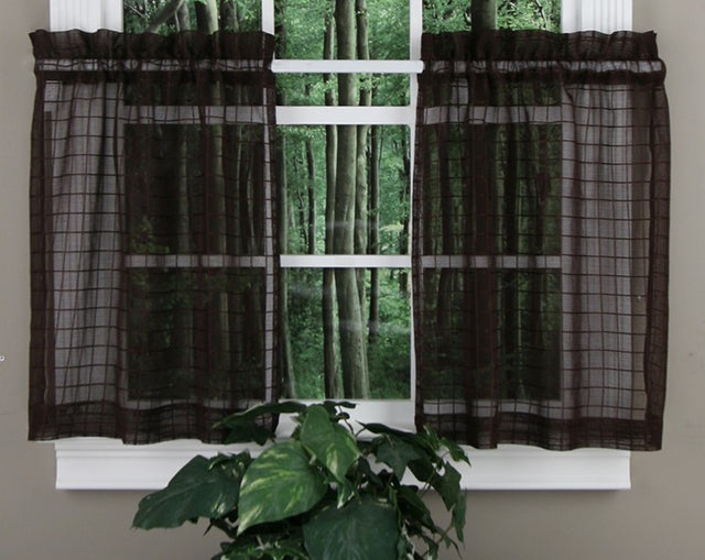 Lexington Sheer tier pair measures 24"L and has a 1 1/2" rod pocket. 100% Polyester and machine washable.