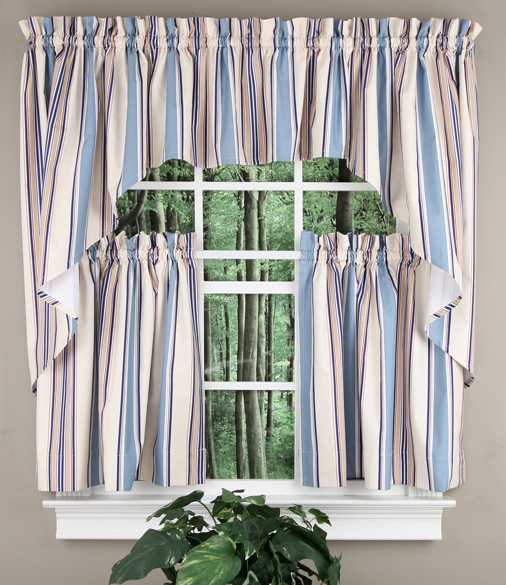 Concord Stripe Lined Swag Pair - Blue / 35"W X 15"L Lined Tailored Valance is backordered and will ship as soon as it is back in stock.
