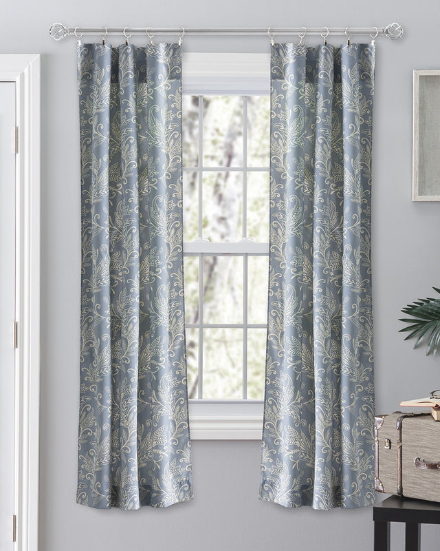 Lexington Leaf Curtain Panel Pair - Blue / 56"W X 63"L Curtain Panel Pair is backordered and will ship as soon as it is back in stock.