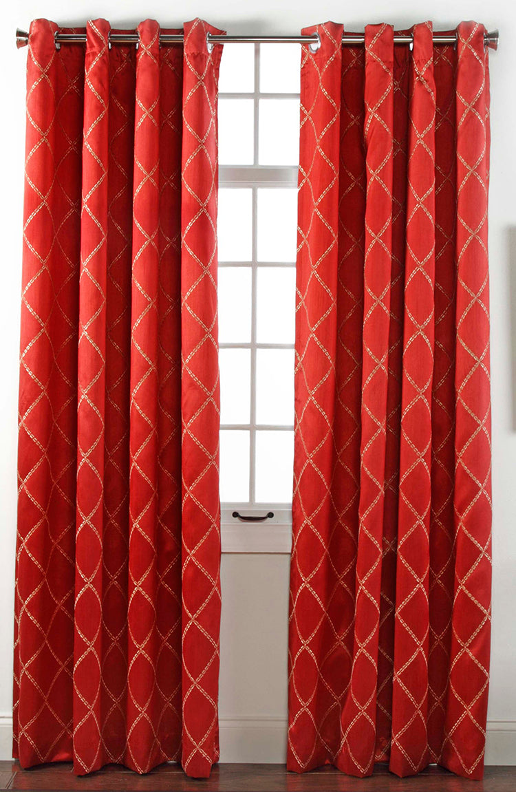 Envision Grommet Panels feature an embroidered crisscross design with blackout lining to help save energy; keep unwanted light out and help get a better night's sleep. Available in 4 vibrant colors. Hang on curtains rods up to 1 ½ in diameter. Fabric 100% Polyester , Grommets: 100% Stainless Steel. Machine washable.
