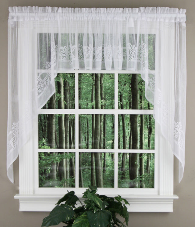 Hydrangea Lace Swag Pair - White / 56"W X 24"L Lace Tier Pair is backordered and will ship as soon as it is back in stock.