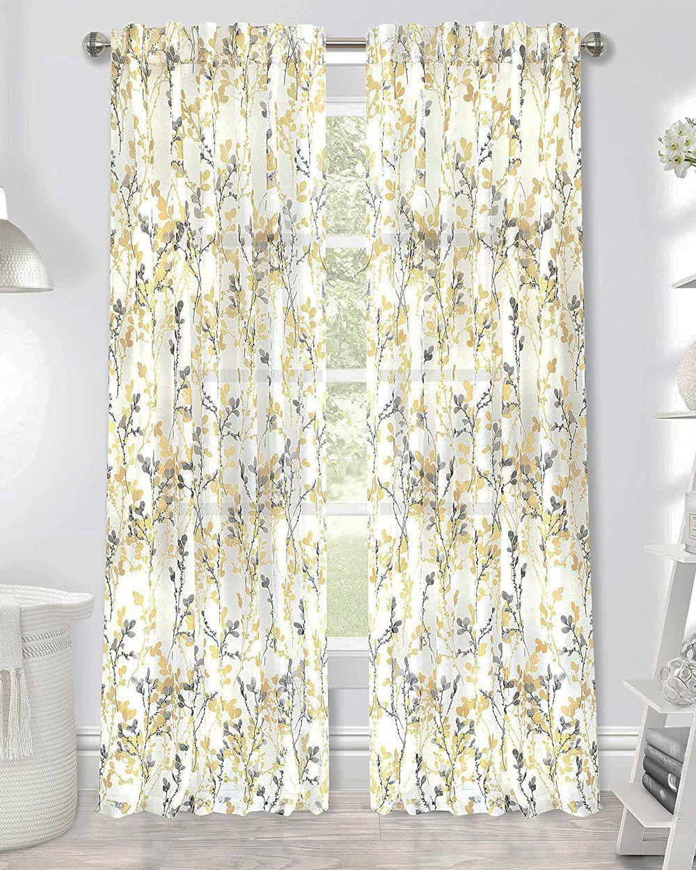 Misty back tab curtain features a linen-like texture floral pattern on a semi-sheer fabric. Misty has a back tabs that measure 3.5" perfect for any size decorative rod or standard curtain road. For proper fullness, use approx two times your window width in fabric. For wider windows use multiple curtains. 100% Polyester and Machine Washable.