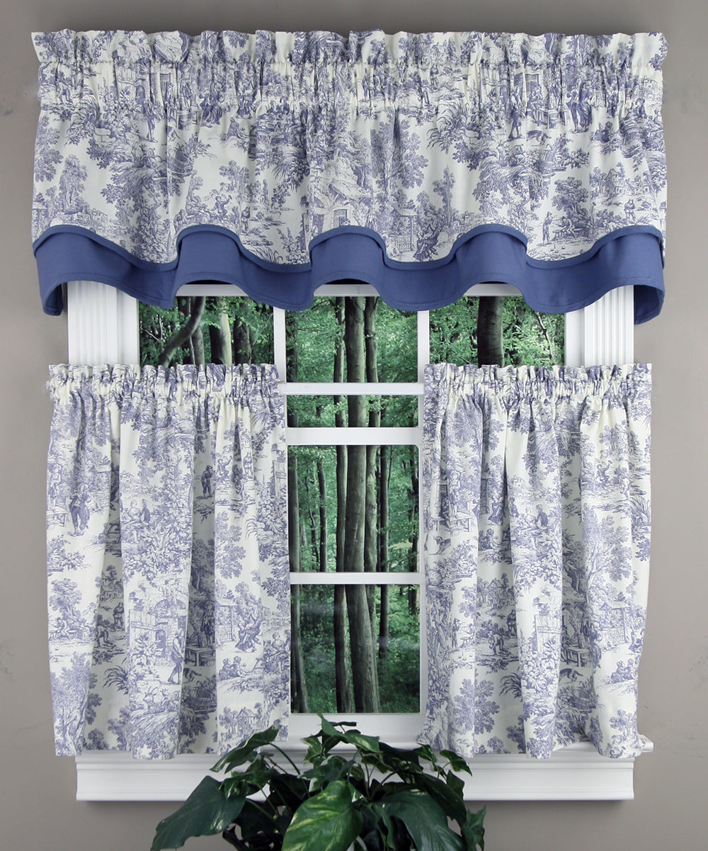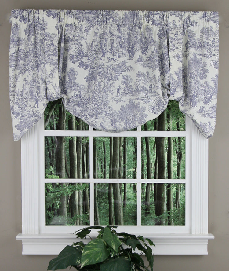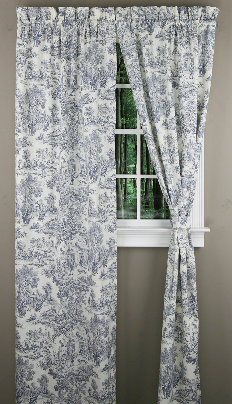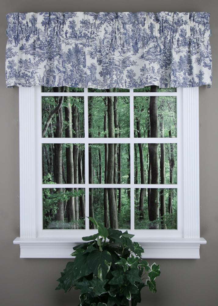 The Victoria Park Bradford valance is a layered valance by Ellis Curtains. It features a toile design has been popular since the 18th century, and often depicts the life and landscape of the French countryside. The playful patterns frequently tell a story, and the attention to detail is incredible. Victoria Park Bradford valance has a 3" Rod pocket and 2" header. Matching Tiers, tailored valances and Curtain sets with ties sold separately. 100% Cotton and machine Washable.