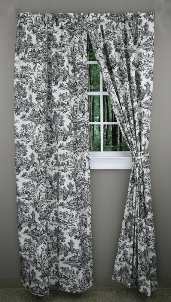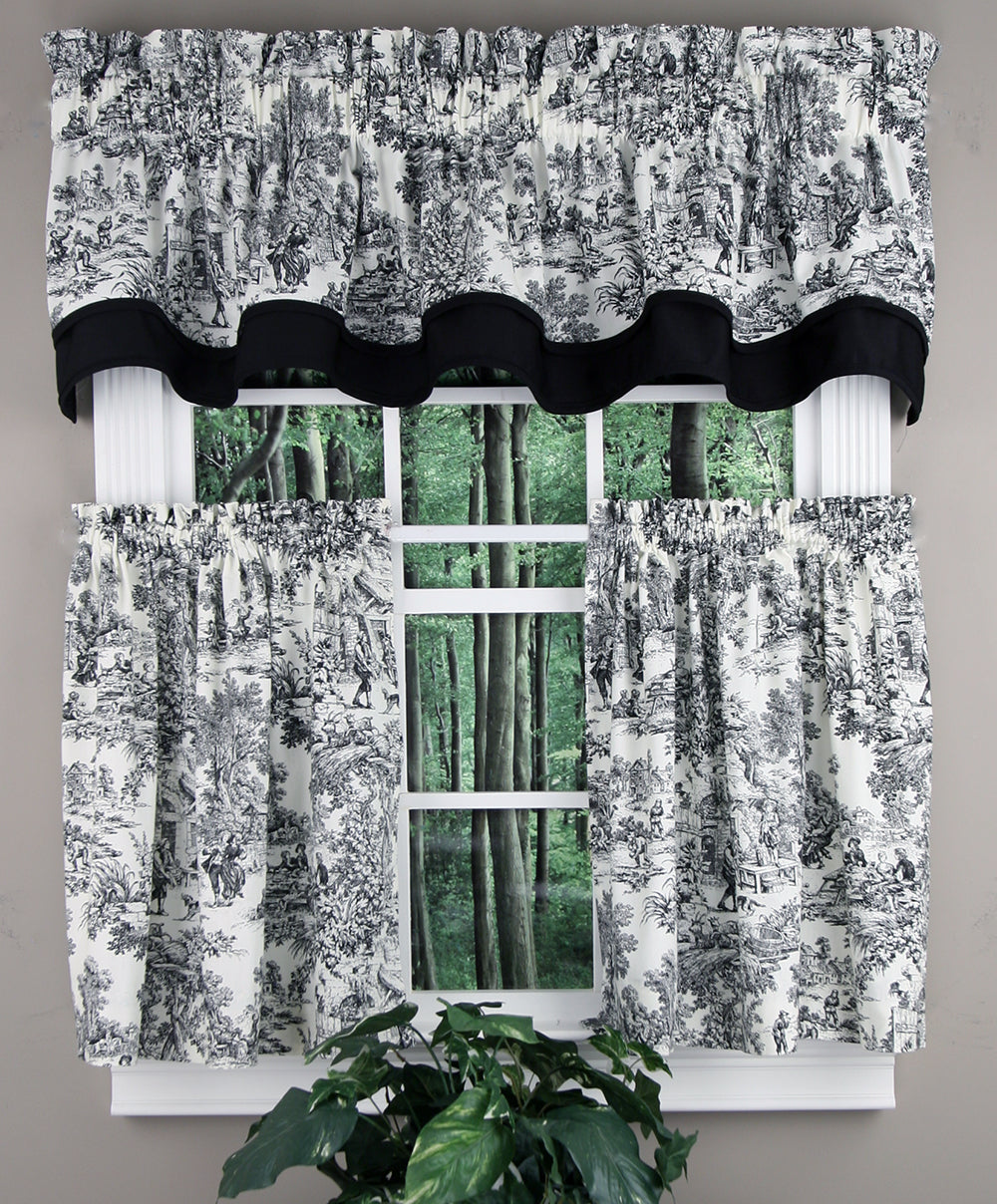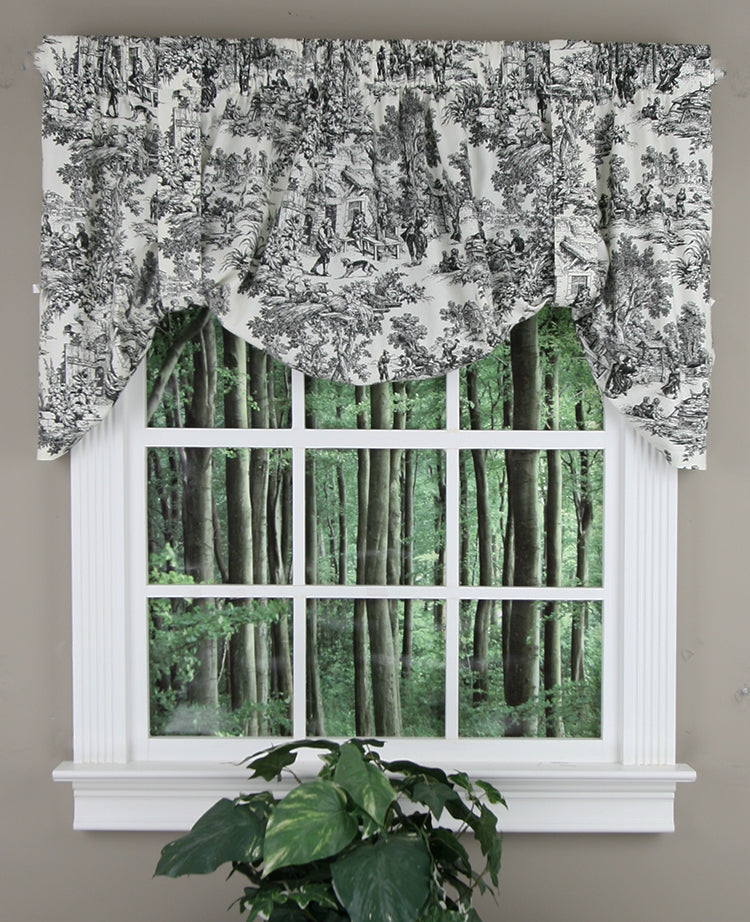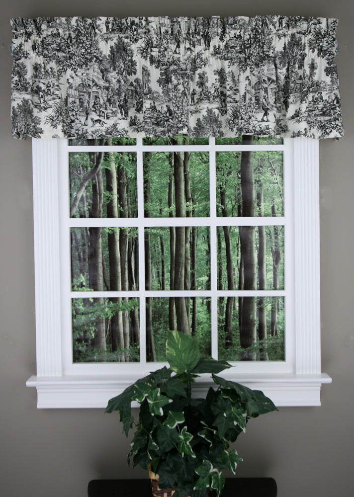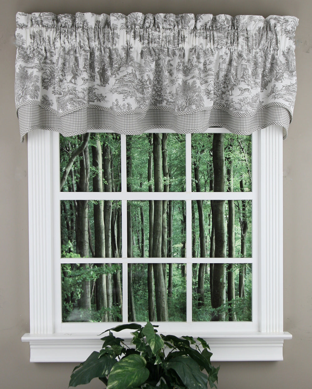 The Victoria Park Bradford valance is a layered valance by Ellis Curtains. It features a toile design has been popular since the 18th century, and often depicts the life and landscape of the French countryside. The playful patterns frequently tell a story, and the attention to detail is incredible. Victoria Park Bradford valance has a 3" Rod pocket and 2" header. Matching Tiers, tailored valances and Curtain sets with ties sold separately. 100% Cotton and machine Washable.