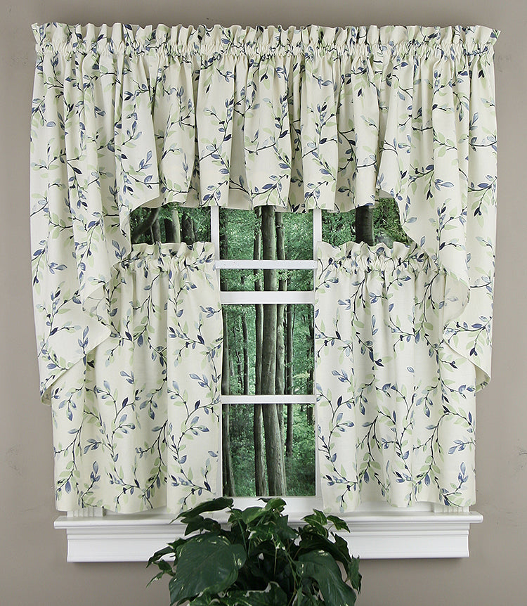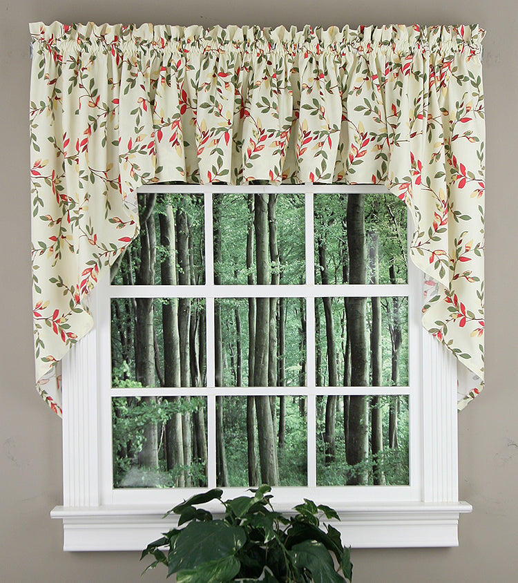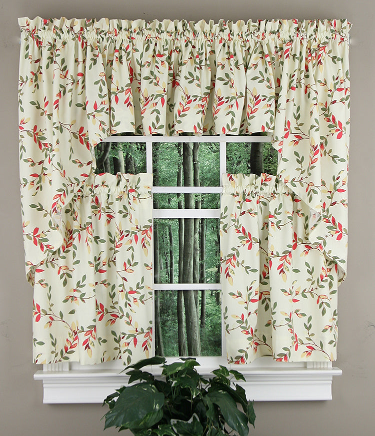 Vintage Vine collection features a traditional open vine design on a medium weight cotton duck cloth. Available in 3 Great Colors. Vintage Vine has a 1 1/2" rod pocket & 1 1/2" header. For proper fullness, use approx two times your window width in fabric. For wider windows use multiple valances. 50% Polyester 50% Cotton Duck Cloth, Machine Washable. Matching tiers and swags sold separately. Made in the USA